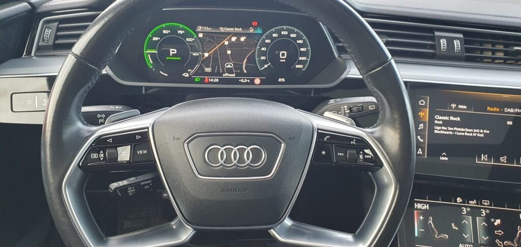 TOP UDSTYRET MODEL, NYE DÆK, VINTERDÆK PÅ ORIGINAL ALU MEDFØLGER, Galaxyblå metallak, 21″ alufælge, vinterhjul, el-soltag, Panoramaglastag, virtuelle sidespejle, tågelygter, xenonlys, led kørelys, fuld led forlygter, kurvelys, adaptive forlygter, matrix led forlygter, led baglygter, kørecomputer, digitalt cockpit, multifunktionsrat, læderrat, Komfortmidterarmlæn foran, delalcantaraindtræk, sportssæder foran, højdejust. forsæder, justerbar lændestøtte, splitbagsæde, mørk loftbeklædning, ambiente belysning, automatgear, ratgearskifte, 4 zone klima, køl i handskerum, nøglefri adgang, nøglefri tænding, adaptiv fartpilot med kø-assistent, aut. nedbl. bakspejl, udv. temp. måler, sædevarme, 4x el-ruder, automatisk start/stop, el betjent bagklap, frunk, adaptiv undervogn, elektrisk parkeringsbremse, trådløs mobilopladning, type-2 ladekabel, app integration, nødlader, cd/radio, håndfrit til mobil, navigation, dab+ radio, musikstreaming via bluetooth, android auto, apple carplay, internet, sd kortlæser, usb-a tilslutning, aux tilslutning, usb-c tilslutning, regnsensor, automatisk parkeringssystem, 360° kamera, bakkamera, parkeringssensor (for), parkeringssensor (bag), virtuelt bakspejl, dæktryksmåler, skiltegenkendelse, førerovervågning med advarsel, træthedsregistrering, intelligent hastighedsassistent, isofix, fjernlysassistent, automatisk lys, lygtevasker, airbag, esp, Vognbaneskiftadvarsel inklusive Audi pre sense rear, stemmebetjening, automatisk nødbremsesystem, blindvinkelsassistent, auto hold, automatisk nødassistent, udstigningsadvarsel og assistent til registrering af tværgående trafik bagved, aftageligt træk